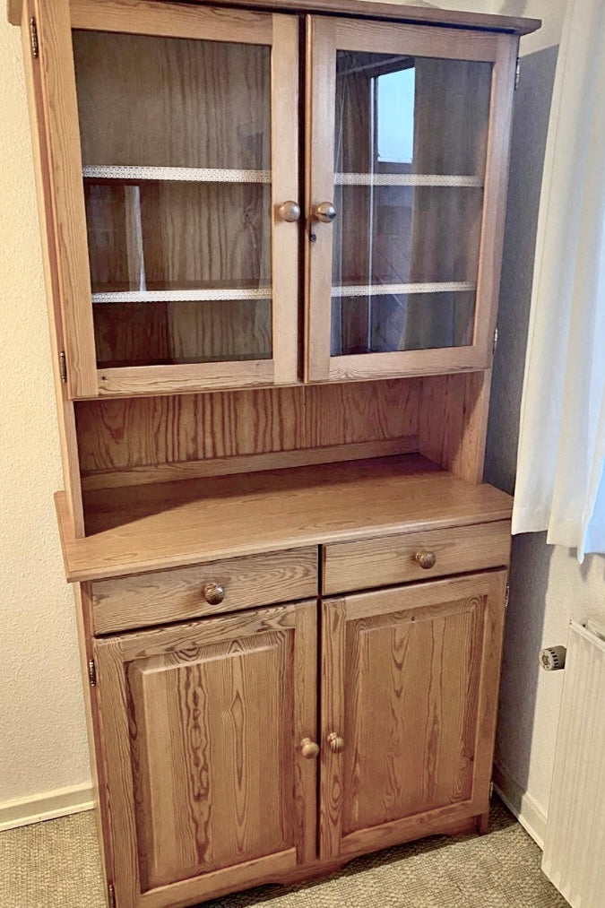 Den gamle vitrine var lavet i massiv fyrretræ, men havde et lidt kedeligt look. Den var dog perfekt som udgangspunkt for projektet.
