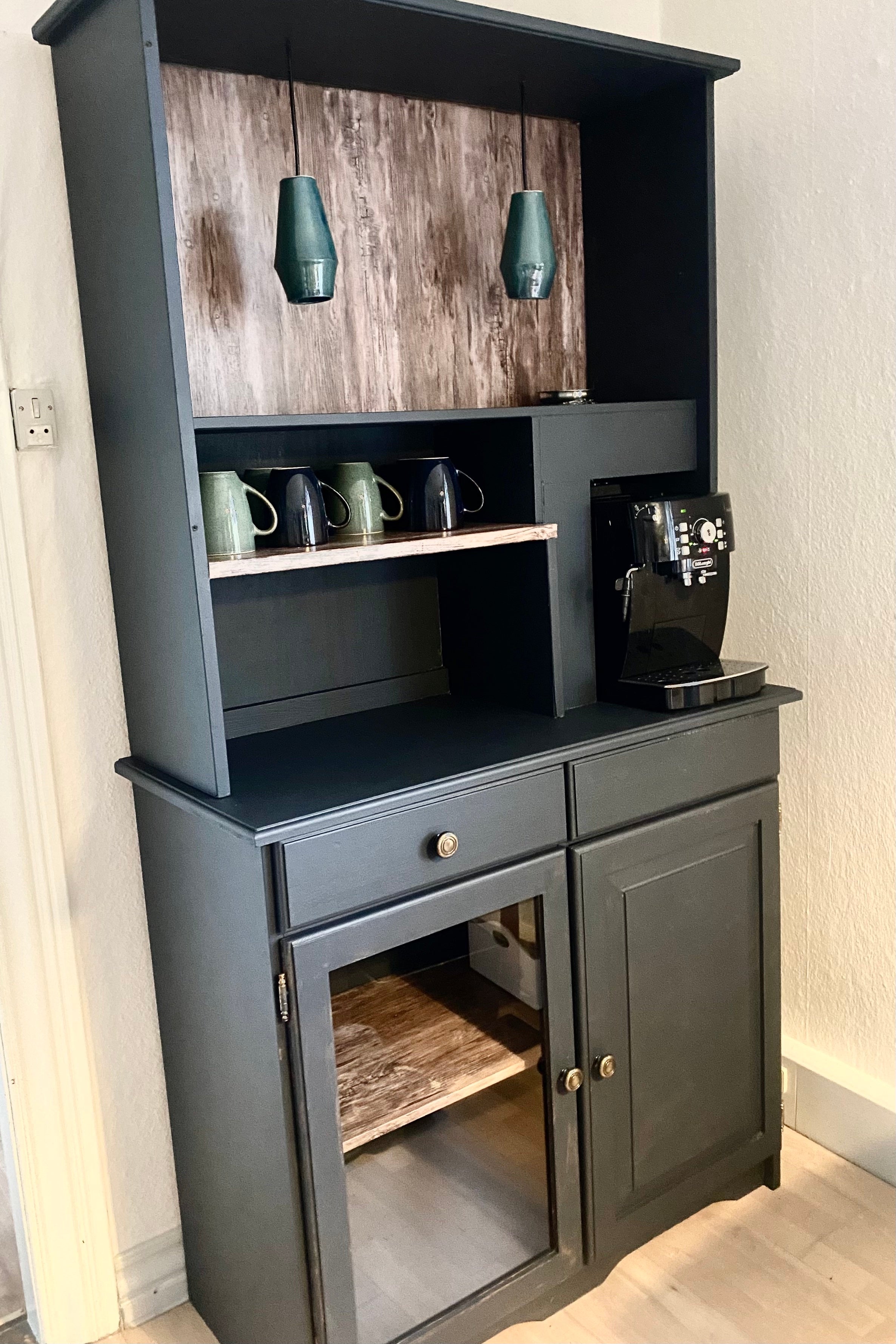 Vitrinen blev til denne cool kaffebar, som fik mange kommentarer fra besøgende i vores hjem.