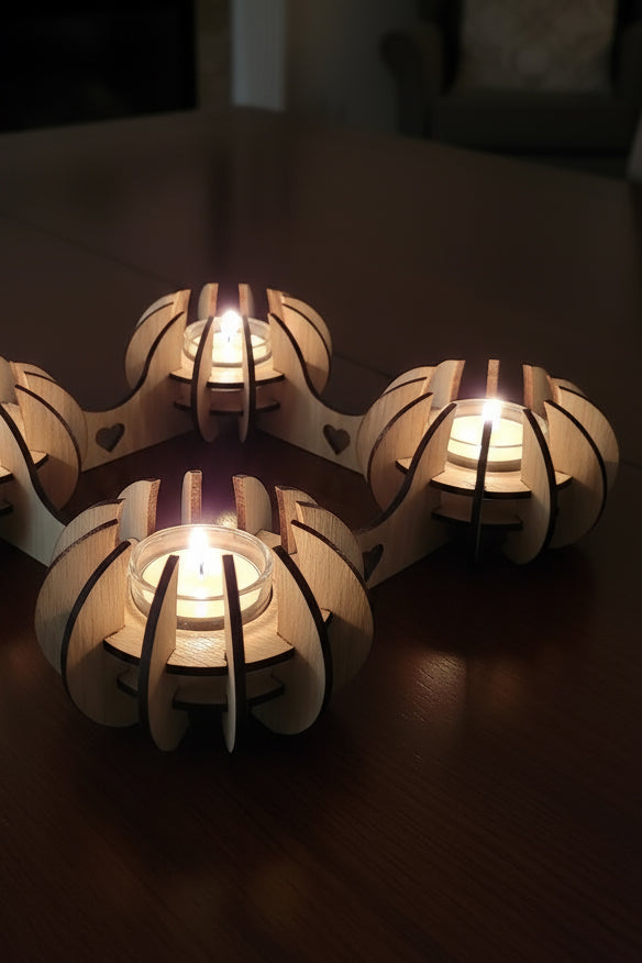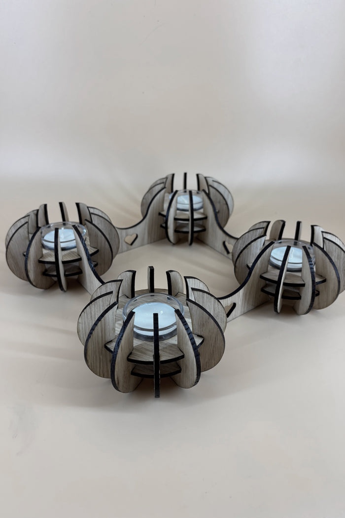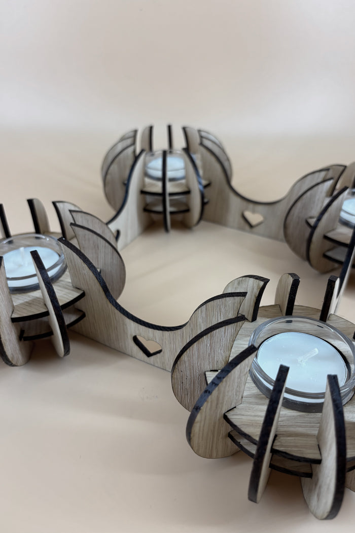 Gør denne jul ekstra hyggelig med en håndlavet adventsstage. Lotus adventsstagen er lavet af egetræ og har 4 små glasstager til fyrfadslys.
